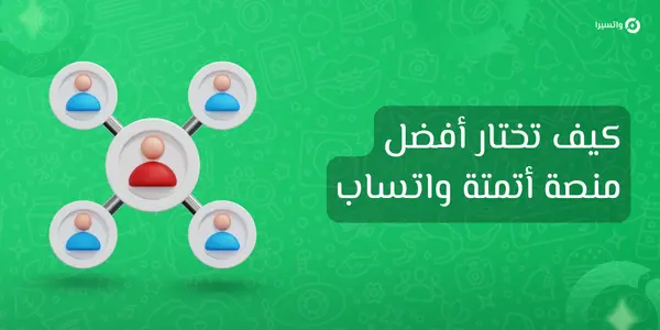 Search واتساب10:54 صديسمبر 18, 2025الفرق بين QR واتساب وواجهة واتساب السحابية في الربط مع أتمتة واتسابنورة العلي ووكمرس11:10 صديسمبر 15, 2025ربط ووكومرس بواتساب لإرسال إشعارات الطلبات تلقائياً للعملاء ومشرف المتجر عبر إضافة واتسيراخالد سليمان أتمتة واتساب11:28 صديسمبر 10, 2025اكتشف قوة واتسيرا، المنصة العربية الأولى في أتمتة واتساب، وتعرّف على المميزات، والأسئلة الشائعة، وطريقة الاشتراكخالد سليمان واتسيرا4:41 منوفمبر 17, 2025ما هي أتمتة واتساب؟ دليلك لاختيار أفضل منصة أتمتة ذكية من بين أكثر من 100 منصة في السوق العربيزهرة محمد